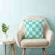 A bold turquoise and white chequerboard pillow with a clean geometric style. Perfect for modern decor.