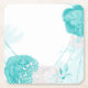 turquoise white floral wedding square paper coaster