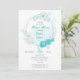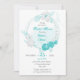romantic turquoise and white flowers on a beautiful wreath bridal shower invitation.