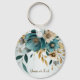 Turquoise White Flower Golden Leaves Elegant keychain. Unique, beautiful, stylish design. Easy to be personalised. Font style, size, and colours can be changed. Matching items are available.