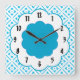 Turquoise White Flower Retro Pattern Wall Clock