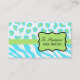 Turquoise, White & Green Zebra & Cheetah Custom Business Card