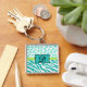 Turquoise White Green Zebra Leopard Skin Monogram Key Ring