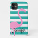 Turquoise White Stripe Personalised Pink Flamingo Case-Mate iPhone Case