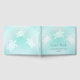 This lake house guest book feature a coastal design in soft colours, white turtles on a soft shiny turquoise background.