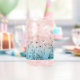This captivating glass can design features an intricate hand-drawn illustration of wildflowers and butterflies, set against a striking gradient background that transitions from a vibrant turquoise to a soft cream. The custom name is elegantly displayed in a vintage font, adding a personalised and sophisticated touch. This colour variant brings a vibrant and lively feel, perfect for those who appreciate a bold blend of nature and style in their drinkware collection.