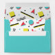 Turquoise envelope with a fun liner featuring a 90s inspired pattern.
