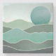 This fantasy landscape is in beautiful textured layers and shades of turquoise and aqua with a sun and hills and mountains.