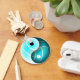 This volleyball yin and yang keychain features semitransparent black and white yin and yang elements that reveal a minimalistic volleyball (represented only by its seams in white) and a turquoise background - customise with her name - by katz_d_zynes