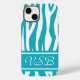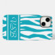 Turquoise Zebra Print with monogram Case-Mate iPhone Case