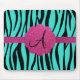Girly Black and turquoise zebra stripes pattern background with faux pink glitter scallop circle and pink glitter stripe and monogram letter change to any letter a,b,c,d,e,f,g,h,i,j,k,l,m,n,o,p,q,r,s,t,u,v,w,x,y,z