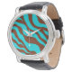 A bright turquoise and dark brown zebra print decorates this stylish watch. The design is from original art.