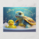 Turtle and Rubber Duck in the Bath Custom Text Postcard