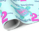 Turtle art pink aqua age name 2nd birthday wrap wrapping paper