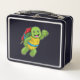 This is a standard metal lunchbox that appears to work just fine. We designed this box ourselves with an uploaded photo and custom text on the front and back. It looks absolutely beautiful except the front of the lunchbox is not centered like it shows in the photo. The print borders don't align with the inset flat part of the box where the preview photo online showed it perfectly centered in there. The back looks nice and centered though.
