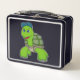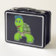 This is a standard metal lunchbox that appears to work just fine. We designed this box ourselves with an uploaded photo and custom text on the front and back. It looks absolutely beautiful except the front of the lunchbox is not centered like it shows in the photo. The print borders don't align with the inset flat part of the box where the preview photo online showed it perfectly centered in there. The back looks nice and centered though.