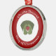 This Christmas tree ornament has a pair of turtle doves with green plumage with their heads bowed towards each other forming the shape of a red love heart at the centre with the phrase “On the second day of Christmas” in white around the red outer ring. Ornaments with the other 11 days of Christmas are also available in my store. From my original digitally created image.