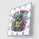 Turtle drinks on a skateboard! square wall clock