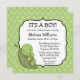 A cute green baby turtle sitting on a leaf with a polka dot background. Perfect for a little boy baby shower. Easily personalise with your information! Graphics © Scrappin Doodles at www.scrappindoodles.com