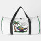 This white duffle bag features a charming cartoon of a relaxed turtle napping in a hammock strung between two palm trees, reading a book. The text reads, "Speed is overrated, nap time isn't." This humourous design is perfect for those who prioritise relaxation and a slower pace of life. Edit colour of the bag caps and body in the Design tool to your favored colours.