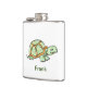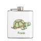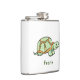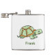The flask itself is fine. It’s a cheap flask, obviously bought in bulk, however am prepared to overlook that. Given that it is a personalized item, I would have liked to have seen gift boxing instead of the generic packaging. Terrible printing, and/or quality. It’s a cheap, tacky vinyl. It is not cut straight and is also applied in a way that it is overhanging the bottom, causing the glue to catch on items and it will eventually roll and tear, damaging the wrap.