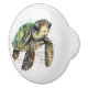 A ceramic knob featuring a swimming turtle in watercolor illustration style.