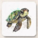 A hard plastic coaster featuring a swimming turtle in watercolor illustration style.