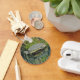 Do you love turtles or are you a nature enthusiast? This inexpensive round keychain features a photo which captures a turtle resting on a rock against a backdrop of moss and reeds. The turtle's and reed's reflections can be seen in the lake water.