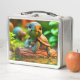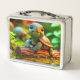 This is a standard metal lunchbox that appears to work just fine. We designed this box ourselves with an uploaded photo and custom text on the front and back. It looks absolutely beautiful except the front of the lunchbox is not centered like it shows in the photo. The print borders don't align with the inset flat part of the box where the preview photo online showed it perfectly centered in there. The back looks nice and centered though.
