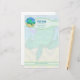 Digital sea turtle art. A green sea turtle on a beach. Ocean and beach are made of wavy line patterns of blues and sand tones. Customisable stationery with area at top for name and contact info and at bottom for website address -- or choose your own text to enter.