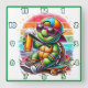 Turtle skateboarder sipping a drink outdoors square wall clock
