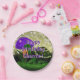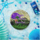 Sparkly Turtle paper plates with Happy Birthday and personalised text. Purple and gold with sparkles, mushroom and turtle.