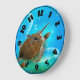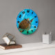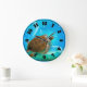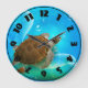 This is a beautiful design of a turtle swimming in the oven. The turtle looks to lovely and the water it is swimming in is so clear and blue. This looks like paradise for the turtle. This turtle swimming design looks great on this clock. Perfect for yourself or as a gift
