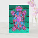 A dazzling Turtle Totem in a lush green oceanic setting graces this vertical greeting card.