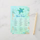 This baby shower game card is What's in your purse? The design features a cute turtle under the sea design on a watercolor background. Personalise the back of the cards with a name. Matching products available.