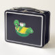 This is a standard metal lunchbox that appears to work just fine. We designed this box ourselves with an uploaded photo and custom text on the front and back. It looks absolutely beautiful except the front of the lunchbox is not centered like it shows in the photo. The print borders don't align with the inset flat part of the box where the preview photo online showed it perfectly centered in there. The back looks nice and centered though.