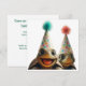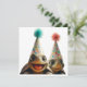 Turtles celebrating birthday with cake and hats invitation