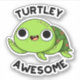 Turtley Awesome Funny Turtle Pun features a cute turtle waving at you and flashing a turtley awesome smile. Funny Pun gift for family and friends who love totally awesome turtle puns.