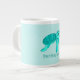 Mug with cute baby sea turtle design and text "Turtley cool". The design is customizable.