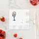 Sunflower floral and stemmed glass wedding cocktail napkin. Stunning. Cobalt blue text. Coined.
