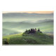 Surise in Val d'Orcia. A beautiful farm house with cypress trees standing on a green plateau, surrounded by the misty hills of Tuscany, Italy. Put some Tuscany in your livingroom...