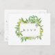 Elegant watercolor green olives and foliage on gold frame, wedding rsvp with song request postcard. Personalise text, customise fonts style, colour and size.