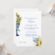 Beautiful Sunflower Tuscan floral Wedding Invitation. Mediterranean back. Bride's Parents, Blue text.