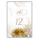 Autumn sunflowers colour this Boho table number card. Delicate calligraphy and ink drawing, with the tracery of Florentine floral elements. Artistic, elegant, and unique.