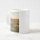 Mug decorated with a scenic photograph of Tuscany, Italy. The design showcases rolling green hills bathed in warm golden light, capturing the beauty of the Tuscan countryside at sunset. The text “Tuscany” appears elegantly at the top in cursive, while “ITALY” is written in bold capital letters at the bottom. The overall look evokes a sense of travel, serenity, and rustic Italian charm.
