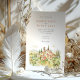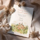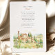 Invite your guests to celebrate your special day amidst the beauty of Tuscany with this exquisite watercolor invitation. The front showcases a picturesque Tuscan village nestled amongst rolling hills, cypress trees, and olive groves, all rendered in a soft, romantic watercolor style. The sun-drenched tones and Italian charm evoke the warmth and beauty of the region.