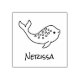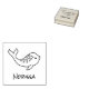 A happy cartoon narwhal with spots and no horn. The stamp can be personalised with a custom name.