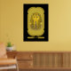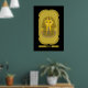 Poster of King Tutankhamun funerary mask on gold cartouche design.