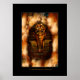 The funerary mask of the Boy King, Tutankhamun features as the centre-piece for this spectacular art print. Flames burn all around him, depicting the peril this young man was in from his birth, as well as the visions he must have imagined as his world changed during this tumultuous period.