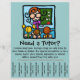 Tutoring can be a great way to earn extra money. This adorable, eye catching flyer is perfect to hang in local businesses, churches, synagogues, libraries or parks. Cut between the contact info at the bottom so that people can just tear off your number so that they don't forget! Fully customisable.